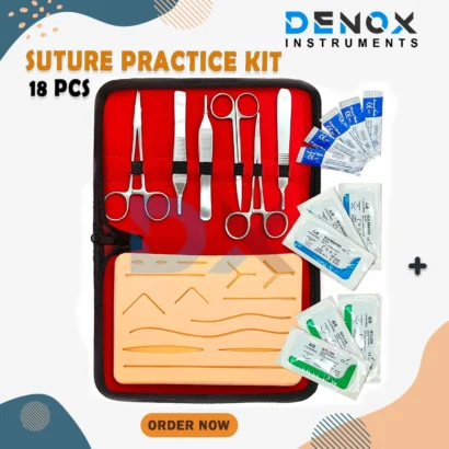 Suture Practice Kit For Medical & Vet Students Suture Training Best SELLING Kit Description: Autoclavable Passivated Ultrasonic Cleaned Rust Free Premium OR Grade Quality Stainless Steel Manufactured from AISI 420 Stainless Steel. Product Conforms to ISO 9001, CE-Quality Mark, ISO 13485, FDA and other Quality Standards High Grade finish for