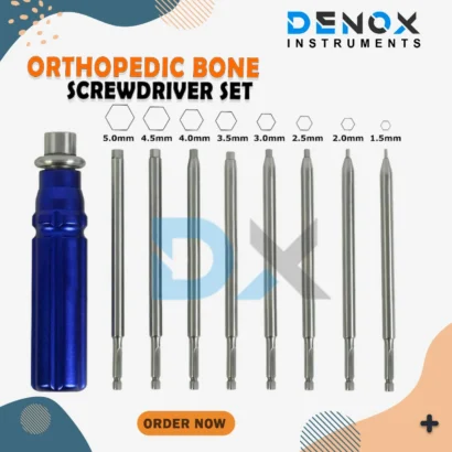 Orthopedic Bone Screwdriver Set With Quick Coupling Handle Surgical Instruments Description: Autoclavable Passivated Ultrasonic Cleaned Rust Free Premium OR Grade Quality Stainless Steel Manufactured from AISI 420 Stainless Steel. Product Conforms to ISO 9001, CE-Quality Mark, ISO 13485, FDA and other Quality Standards High Grade finish for aesthetic and corrosion